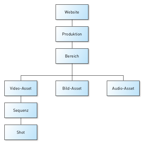 Video-, Audio- und Bild-Assets werden in medialoopster getrennt behandelt. Dies hängt vor allem mit der unterschiedlichen Struktur der Metadaten zusammen.